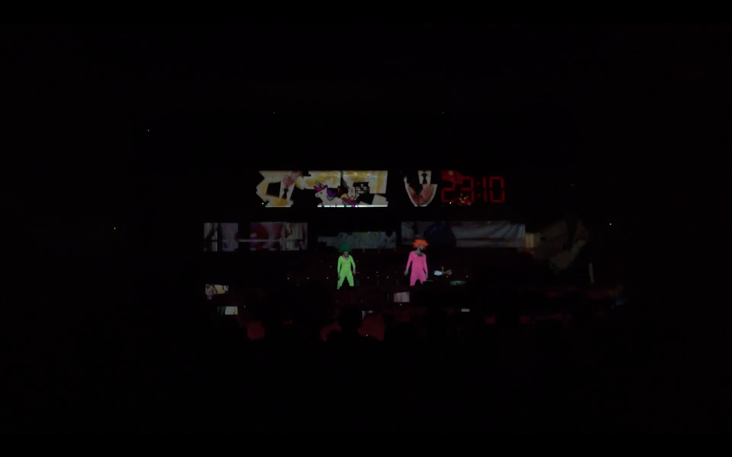 Eden takšnih je bila živa verzija nekakšnih postapokaliptičnih zmenkarij z naslovom SEX! At Alexanderplatz berlinskega kolektiva Fantasia Malware, pri kateri smo kot gledalci bili vpeti v interaktivno igro na srečo, v njej smo virtualnega protagonista pošiljali na tinder zmenke po distopično estetiziranemu berlinskem centru in se odločali o njihovem razpletu, vse do izbora idealnega partnerja in soborca v distopični prihodnosti. Drugi primer tovrstnega poskusa pa je bil VR-disko performans C00L CAT DISCO, v katerem smo po živem prenosu v dvorani spremljali virtualni klub, naseljen z antropomorfnimi avatarskimi didžejkami in gogo plesalkami. Virtualni klub se je z različnimi komandami, vezanimi na projekcijo in svetlobo v dvorani, prepletal z materialnim prostorom, didžejke pa so z interaktivno komunikacijo v chatu na platformi Twitch prejemale napotke in želje za dramaturški razvoj glasbenega, plesnega, narativnega in performativnega aranžmaja. Še bolj interaktivno naravnan pa je bil kolektivni videomapping kolektiva BADAGOLF z naslovom BADABEAM, v katerega smo se gledalci s svojimi mobilnimi napravami lahko povezali v multiplayer skupnost ter z igro podajanja barvnih žogic razpirali uprizoritveni prostor videa ter hkrati bili postavljeni pred odločitev, ali se bomo z žogicami bojevali drug proti drugemu ali bomo z organiziranim kolektivnim razbijanjem vizualnih objektov razširjali prostor mappinga in s tem kolektivno zgradili novo plast videomappinga.