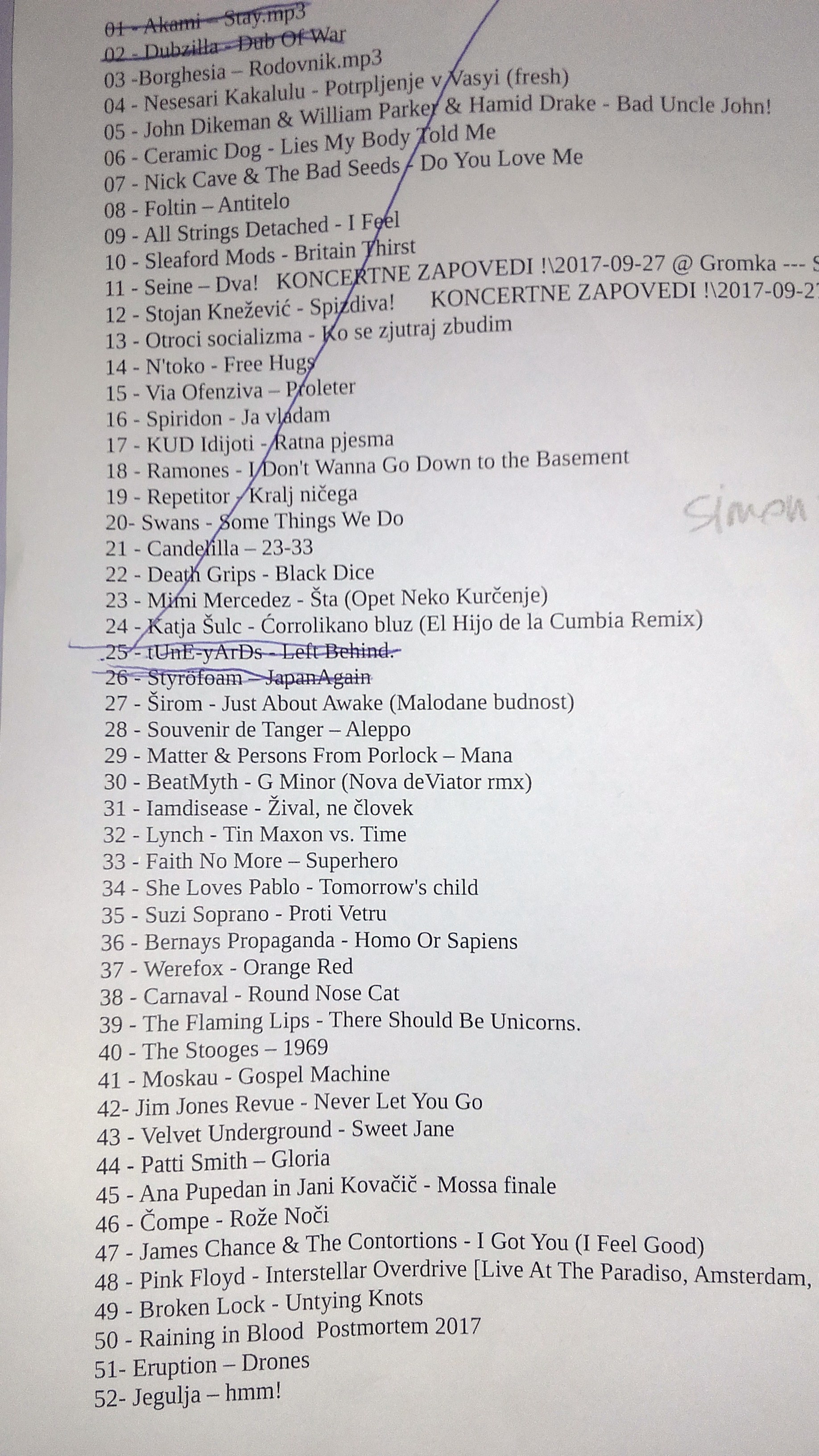 SEZNAM SKLADB ZA 16. 9. 2017, 11.00 - 19.00 (SIMON VENE)