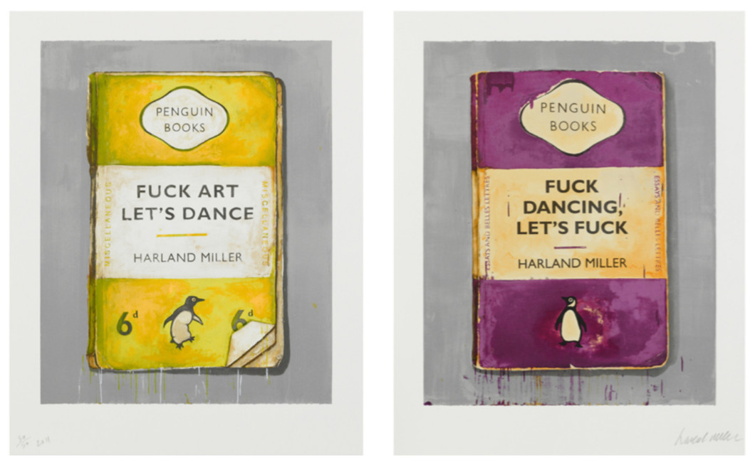 Slika: Harland Miller – Fuck Art Let's Dance & Fuck Dancing Let's Fuck, diptih, 2011