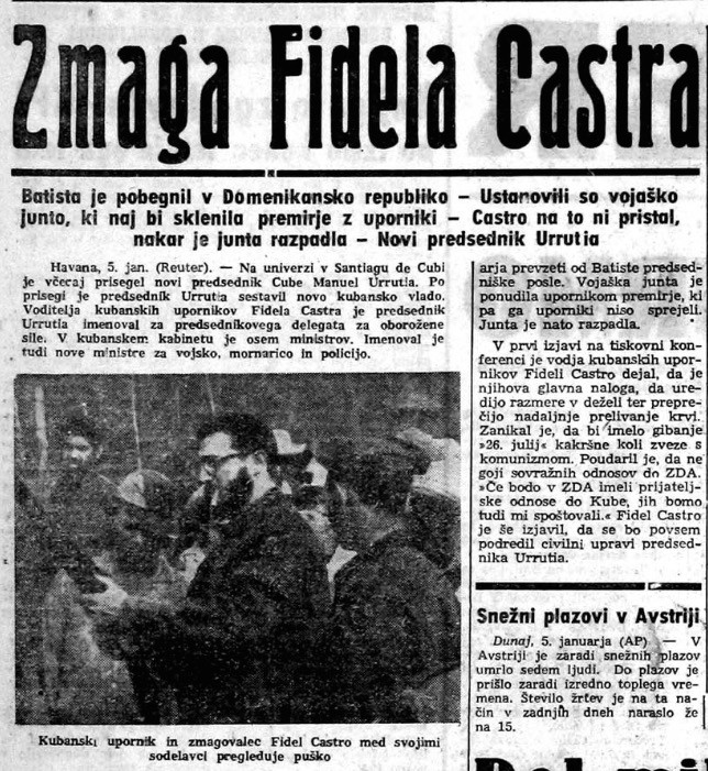 "Spremembe na otoku Kubi, bližnjem sosedu Združenih ameriških držav, sodijo med one dogodke v latinskem delu Amerike, ki jih zadnje mesece uvrščamo pod skupni naslov “čistke diktatorskih režimov.” Kakor po pravilu so režimi te vrste složno sodelovali s tujimi finančnimi krogi, posebno z ameriškimi, zato se javno mnenje in seveda tudi nove vlade obračajo tudi proti gospodarskemu izkoriščanju tujine.