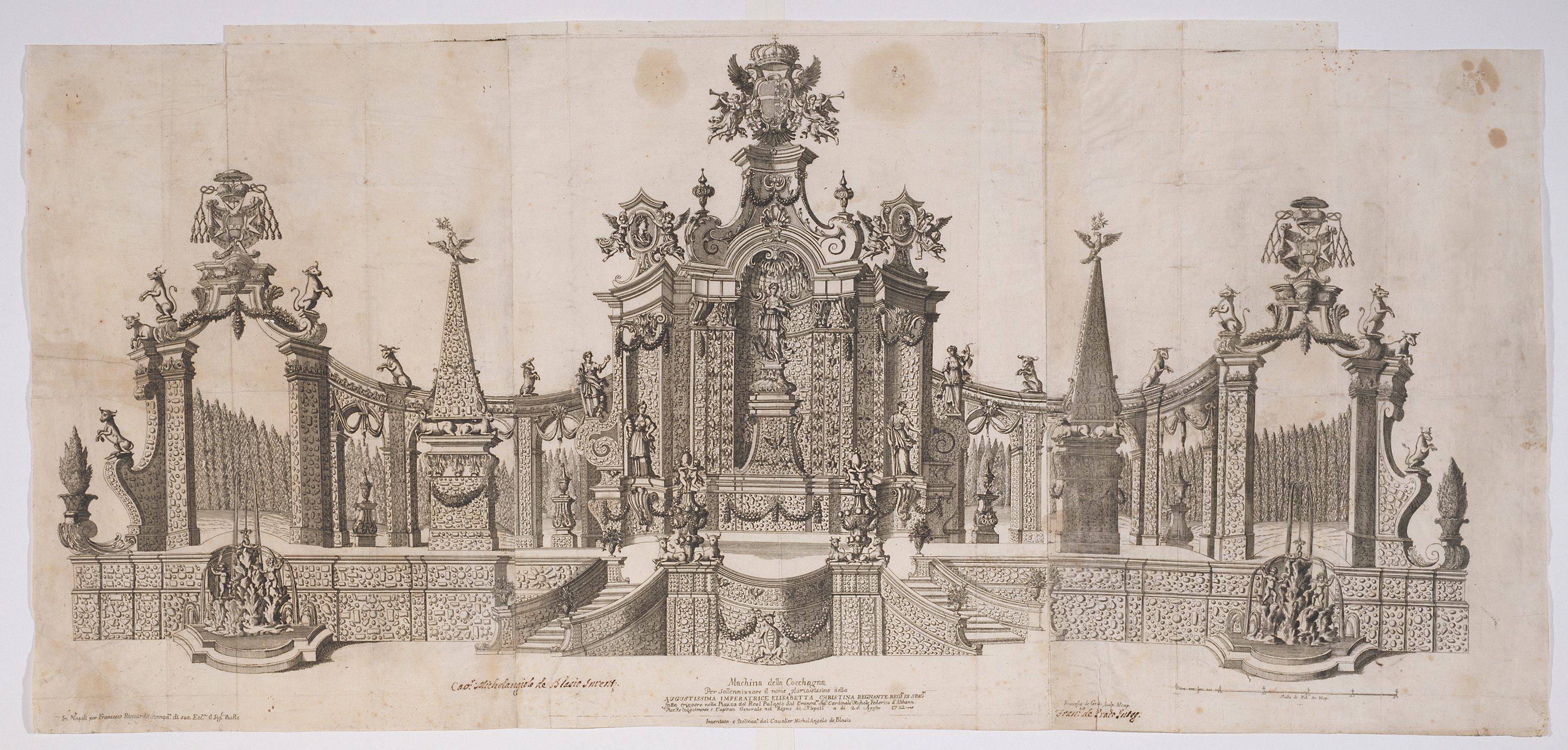 Od začetka osemnajstega stoletja pa so cuccagne postale obilnejše in brutalnejše. Leta 1734 je na primer burbonski vojvoda Parme okupiral Neapelj, izpodrinil avstrijsko oblast in se okronal za neapeljskega kralja. Kot novi kralj je Karel Burbonski v dokaz lastne moči in sprijetosti z lokalno kulturo karneval še povečal. Piramide hrane mu niso več zadostovale. Ukazal je zgraditi nove cuccagne v obliki palač, kipov in templjev.