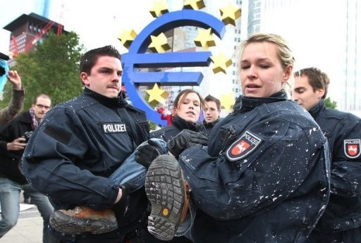 Celinsko finančno prestolnico Frankfurt, kjer je tudi sedež evropske centralne banke, so zasedli protestniki iz vse Evrope, ki v duhu 15. maja in 15. oktobra zasedajo vozlišča finančne moči. Akcija več kot 40 levičarskih organizacij iz Nemčije deluje pod skupnim geslom - Blockupy Europe. Končna postaja varčevalnih ukrepov je namreč vse bliže, z njo pa prihaja tudi vse bolj jasna podoba prihodnosti. To ni več kritična, tolerantna in demokratična prihodnost, v kateri posamezniki zadovoljujejo svoje potrebe po sreči in znanju, temveč prihodnost v kateri izpolnjuješ ukaze in kjer počneš to kar ekonomija od tebe pričakuje. Če seveda ne želiš pristati na smetišču zgodovine. Slednje marsikdo označuje za razkroj kontinentalnega modela socialne države, ki se je že več desetletij podrejala anglosaksonski logiki kapitala. Denar je namreč sveta vladar, s številkami pa je mogoče upravičiti vse krutosti sodobnega sveta.