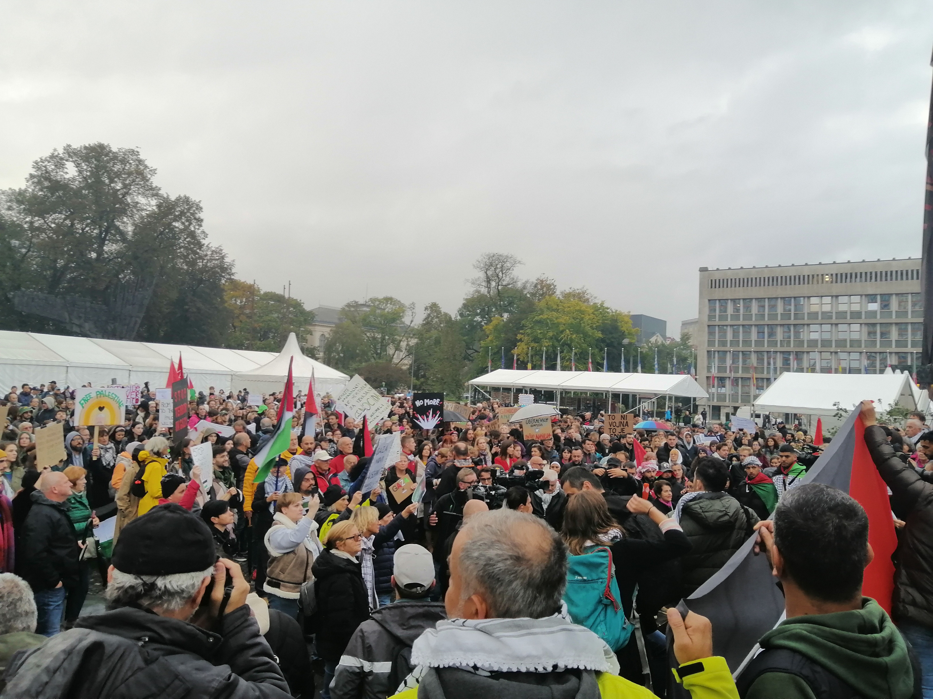 Pred Kultivatorjem smo se udeležili shoda v Ljubljani, ki je s sporočilom podpore Palestincem, na katere padajo bombe, in pozivom premierju Robertu Golobu ter zunanji ministrici Tanji Fajon, naj umakneta slovensko podporo izraleski državi, potekal med Trgom republike in Prešernovim trgom. Sodeč po sklicu seje parlamentarne Komisije za nadzor obveščevalnih in varnostnih služb, ki se je dan pred shodom zgodila za zaprtimi vrati, so na komiisiji razpravljali o »oceni varnostne ogroženosti ob morebitnih protijudovskih protestih v Republiki Sloveniji«, a v četrtek se je izkazalo, da ni šlo za nikakršen »protijudovski protest«.