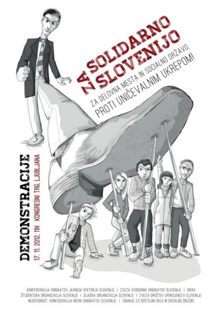 Jutri se bo na Kongresnem trgu v Ljubljani odvila množična demonstracija proti varčevalni politiki vlade, s katerio se nadaljuje opozarjanje na pogubnost varčevanja v času recesije. Že v sredo so se po večjem delu Evrope odvijale manifestacije proti varčevanju, katerih glavni pobudnik je bila Evropska konfederacija sindikatov. Z dnevom akcije in solidarnosti se poskuša graditi vezi in skupno zavedanje o problemih med ljudmi po celotni Evropi, saj se je na isti dan v nekaterih državah stavkalo, v drugih demonstriralo, v nekaterih pa so potekale akcije ozaveščanja o problematiki. Jutrišnjo manifestacijo proti varčevanju v Sloveniji podpira širok krog različnih organizacij, sindikatov, zvez, društev in posameznikov.