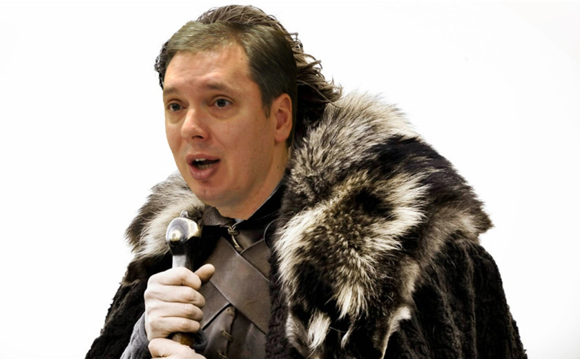 Slika nad prispevkom je avtorsko delo avtorja prispevka, na voljo vsem. Sestavljena je iz predloge za meme BRACE YOURSELVES in obrazom iz portreta Aleksandra Vučića, ki ga je ustvaril Medija centar Beograd.