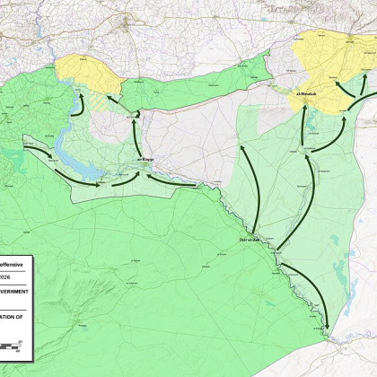 Vir: 2026 northeastern Syria offensive, avtor: Ecrusized, dostopno na: Wikimedia commons (CC0 1.0)
