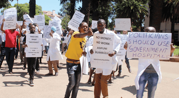 Denarja zmanjkuje tudi v zimbabwejskem zdravstvenemu sistemu. Univerza Zimbabwe v Harareju je suspendirala nekatere profesorje medicine na podlagi suma, da so s svojimi predavanji spodbujali mlade zdravnike k stavki. Ti namreč že dva meseca stavkajo zahtevajoč znosnejše delovne razmere in boljše plače in hkrati ignorirajo poziv vlade, naj se vrnejo na delo v trenutnih razmerah. Mladi zdravniki zato pozivajo Organizacijo Združenih narodov in zasebna podjetja, naj jim s financiranjem omogočijo vrnitev na delo. Zavrnili so tudi nedavni predlog vlade po šestdesetodstotnem zvišanju plač, ki pa bi bilo izplačano v zimbabwejskih dolarjih. Stavkajoči zahtevajo izplačilo v ameriških dolarjih, saj je stobilijonski zimbabwejski dolar vreden 40 centov ameriškega.