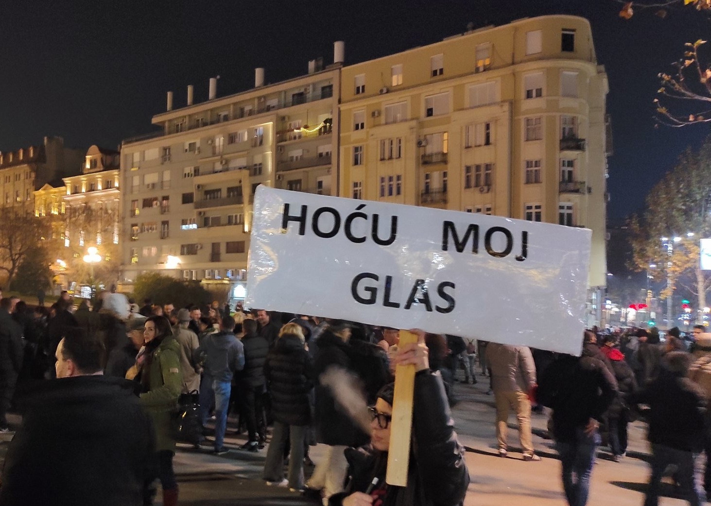 V Beograd je mašinerija vladajoče stranke po trditvah opozicije pripeljala 40 tisoč ljudi, večinoma iz Republike Srbske. Na parlamentarnih volitvah si je Vučićeva stranka tako zagotovila absolutno večino, v beograjskem mestnem svetu pa je Srbijo proti nasilju premagala s 40 odstotki glasov proti 35. V poslopje volilne komisije, kjer je potekala seja o pritožbah na regularnost volitev, so protestniki metali jajca, policija pa je več predstavnikom opozicije preprečila vstop v zgradbo. Protestniki so po koncu seje blokirali odhod članov volilne komisije, ki jih je iz zgradbe pospremila policija. Protesti so se nadaljevali tudi po polnoči, ko je komisija sklicala novinarsko konferenco, na kateri je zavrnila ponovitev volitev v prestolnici. Predstavnika Srbije proti nasilju na parlamentarnih volitvah, Marinika Tepić in Miroslav Aleksić, ki sta lahko prišla na sejo volilne komisije, sta v znak protesta proti volilnim rezultatom napovedala gladovno stavko.