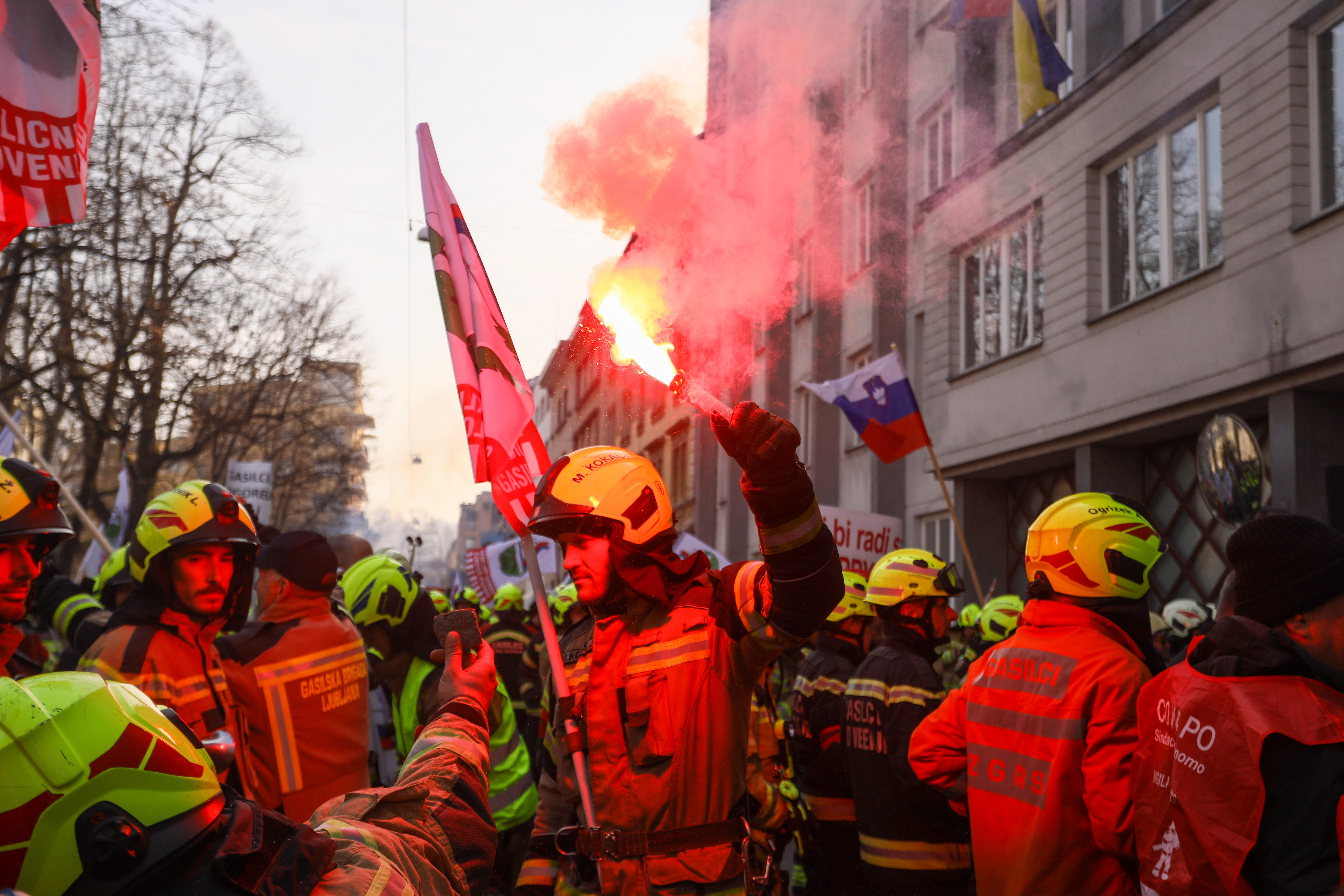 Poklicni gasilci so se zbrali na protestnem shodu, na katerem so od vlade zahtevali odpravo nepravičnih plačnih razmerij in, kot so dejali, pošteno vrednotenje svojega dela. Shod nekaj sto gasilcev je organiziral Sindikat poklicnega gasilstva Slovenije in se je začel na Trgu republike, od koder so pot nadaljevali pred vlado, kjer je spregovorilo več predstavnikov poklicnih gasilcev. Ves čas trajanja protesta so odmevali poki močnih petard, valil se je dim iz bakel, gasilci pa so na protest prišli tudi s sirenami. Pred zbrano množico je imelo govore več predstavnikov gasilcev, med drugim vodja Gasilske brigade Ljubljana, Silvo Puntarič.