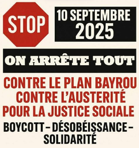 V Franciji dan po menjavi premierja potekajo protesti proti politiki varčevanja pod sloganom »Blokirajmo vse«. Francozi so na družbenih omrežjih organizirali blokade križišč, cest, avtocest in celo sabotaže električnih napeljav na železnicah. Protesti potekajo po celi državi, med drugim v Parizu, Nantesu, Toulonu, Bordeauxu, Marseillu, Lyonu, Montpellieru in Rennesu. Postavljanje barikad spremlja zažiganje smetnjakov in gum. Policija se nad državljane v blokadi spravlja s solzivcem, protestniki pa odgovarjajo z dimnimi bombami. Parižani med drugim blokirajo pariško obvoznico, ki jo sicer dnevno prevozi več kot milijon vozil. V nekaterih pariških okrožjih protestniki organizirajo plenume. Dijaki v Parizu so blokirali ceste pred srednjimi šolami in na policijo, ki jih je prišla razgnat s solzivcem, poleg dimnih bomb metali smeti. Vlada je mobilizirala 80 tisoč policistov za soočenje s pričakovanimi sto tisočimi protestniki, kolikor so jih dan prej napovedali francoski mediji. Do sedaj je policija aretirala okrog tristo protestnikov, od tega več kot polovico v pariški regiji.