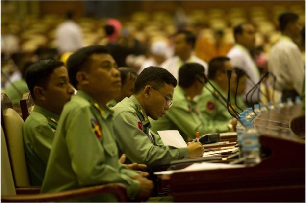Ustave kljub dvotretjinski večini NLD brez privolitve vojske ne more spremeniti, saj ima ta pravico veta na morebitne ustavne spremembe. Aj Čan Niang iz Democratic Voice of Burma, neodvisnega mjanmarskega medija, najprej spregovori o omejeni moči novega parlamenta: