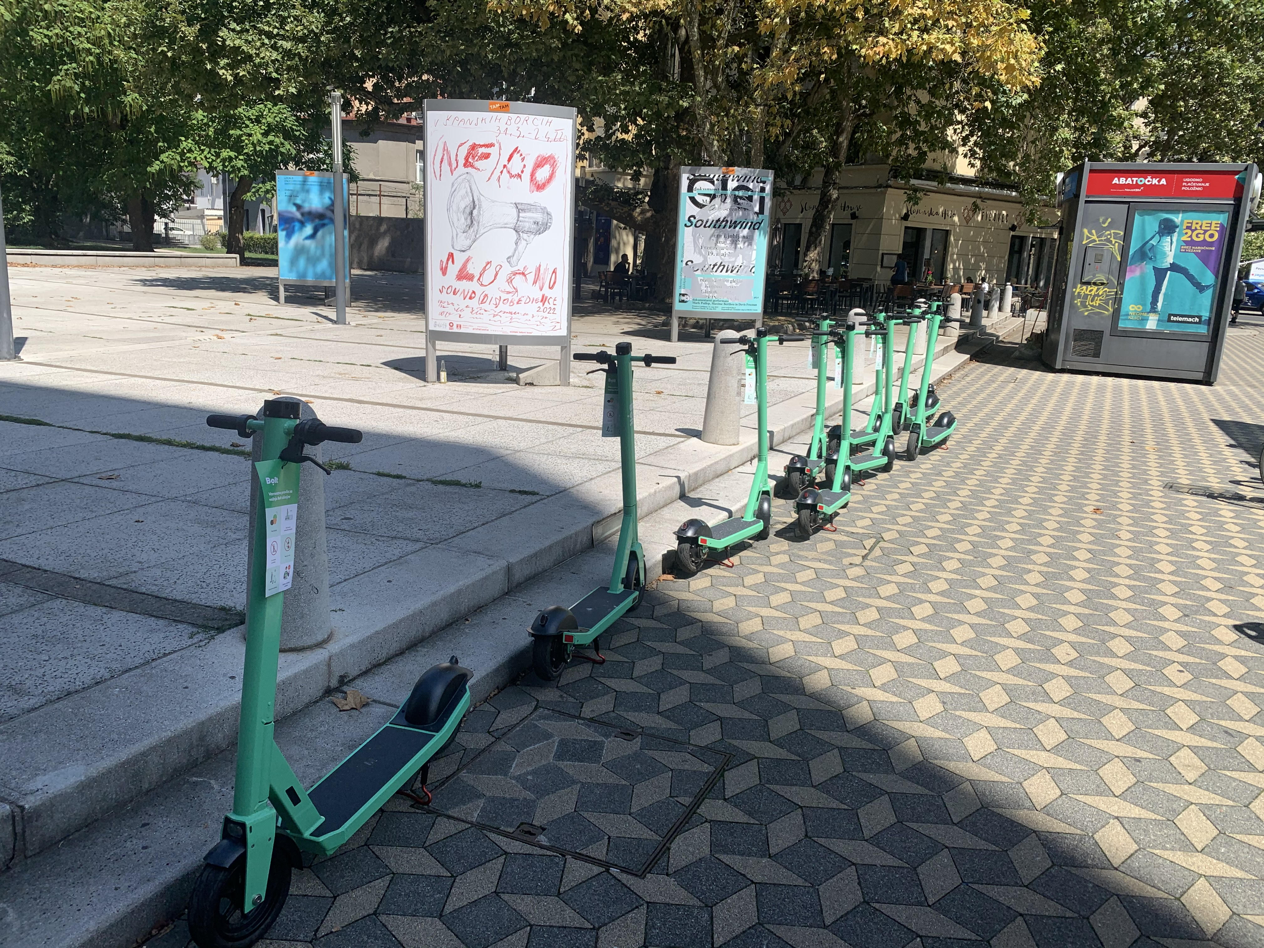 Ljubljančanke in Ljubljančani ste se v zadnjih tednih na ulicah najlepšega mesta na svetu nedvomno že morali umakniti kakšnemu vozniku električnega skiroja zelene barve. Skiroji so last estonskega podjetja Bolt in so na voljo za izposojo prek mobilne aplikacije. Trenutno je uporabnikom na voljo okoli tristo skirojev, ki si jih lahko izposodijo in jih po končani vožnji parkirajo na določenih mestih, ki jih je v Ljubljani trenutno nekaj deset. Vendar so mesta za parkiranje, vsaj za enkrat, zelo slabo določena in zato zeleni dvominikolesniki ležijo po vsem mestu.