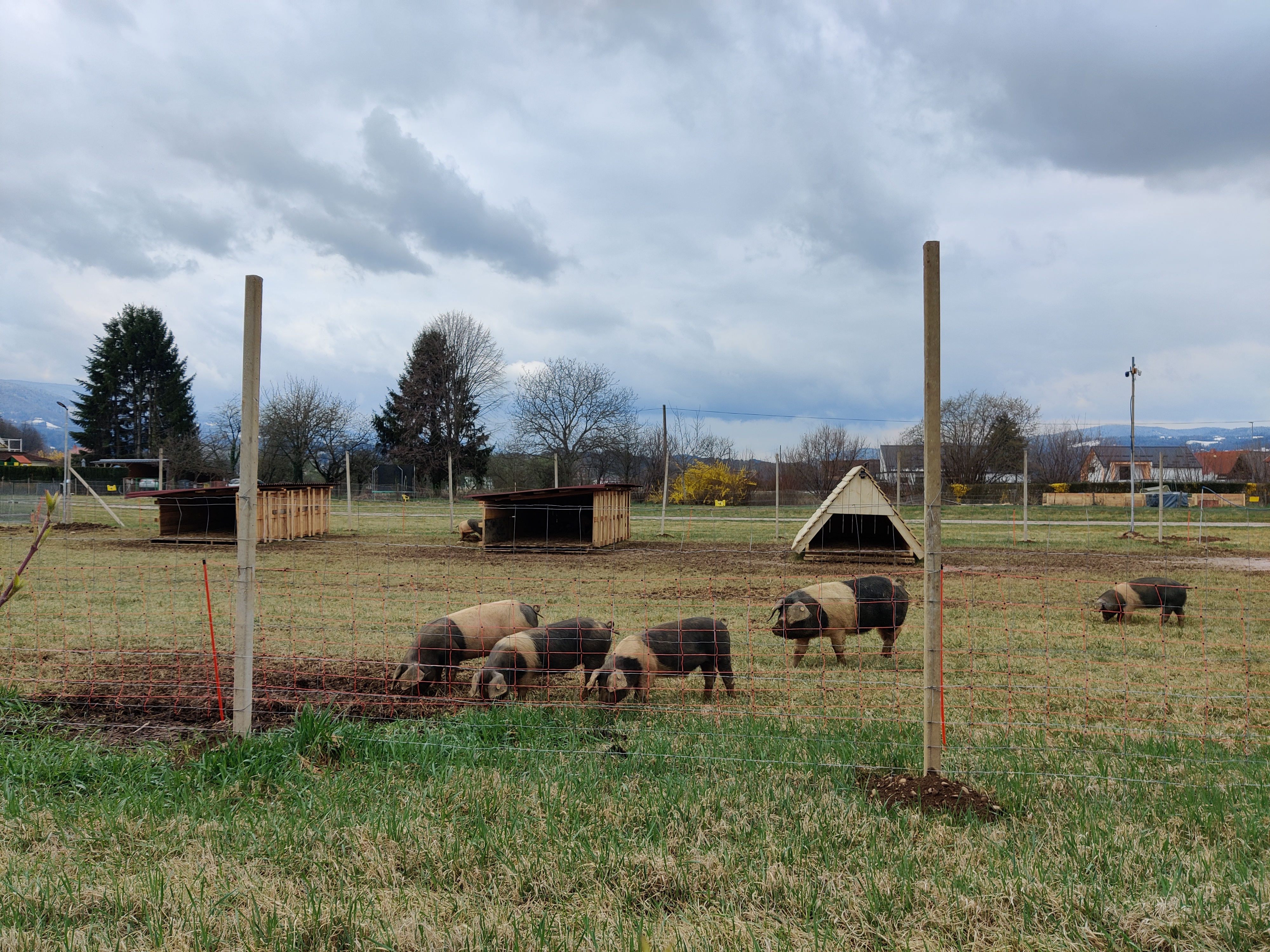 Na mirno, oblačno nedeljsko opoldne so rili po še večinoma zelenorumeni travnati površini. Nekateri so počivali v treh lesenih objektih, ki stojijo na zemljišču. Ko so bili postavljeni, je Jovanović za spletni medij lokalec.si povedal: