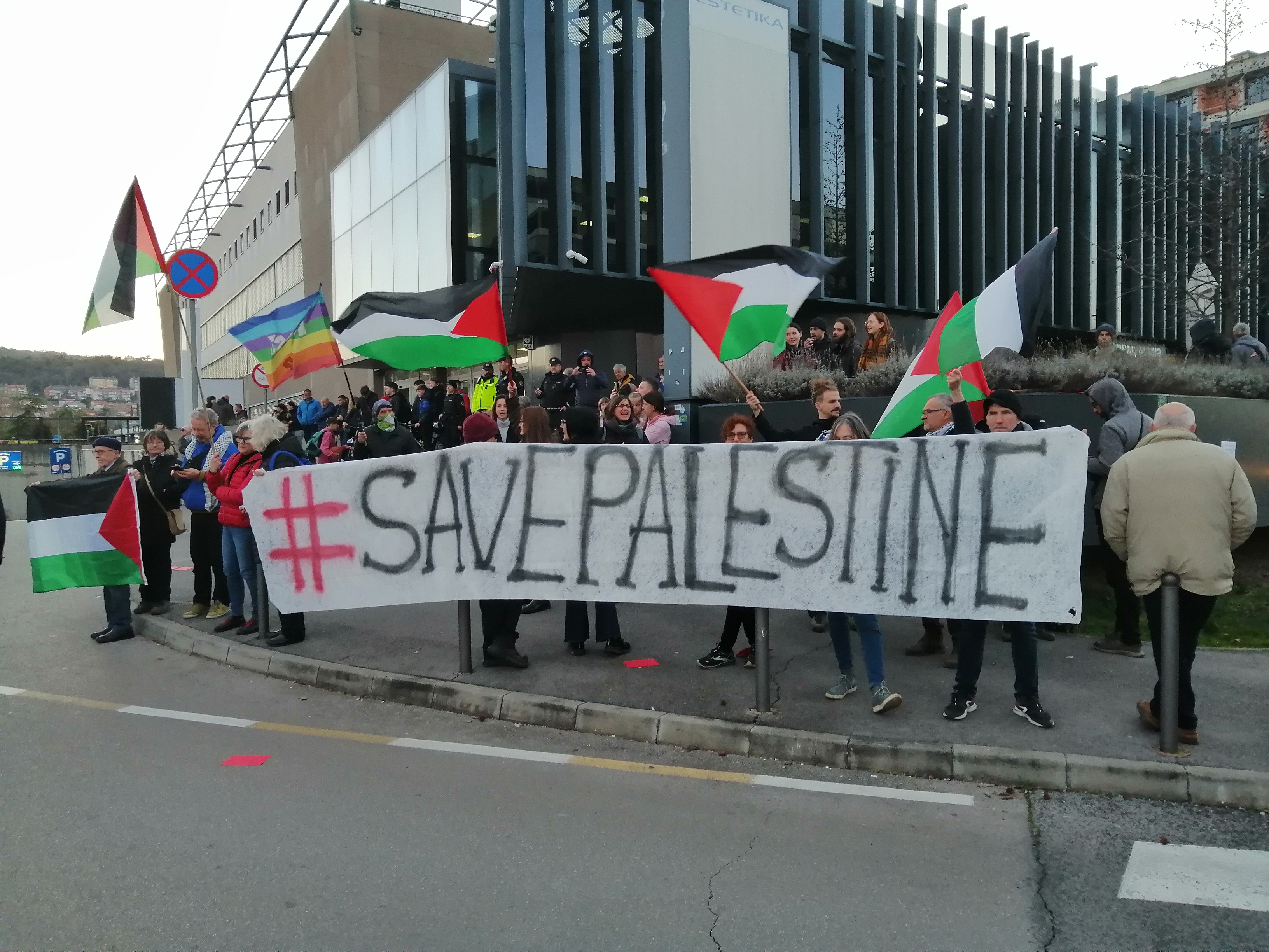 Obljubili smo reportažo s tekme med košarkarskima reprezentancama Slovenije in Izraela, ki je Košarkarska zveza Slovenije kljub pozivom ni odpovedala. Vrh tega je zveza na tekmah z Ukrajino in Izraelom prepovedala vnos zastav tujih držav in transparentov z žaljivo vsebino v dvorano. Zato je nekaj deset aktivistov organiziralo večinoma ljubljansko ekspedicijo v Koper. Namen ekspedicije je bil v dvorani izraziti glasno nestrinjanje s slovensko in zahodno politiko podpore Izraelu, ki izvaja genocid nad Palestinci v Gazi. V podporo protestnikom iz notranje Slovenije so pred dvorano Bonifika prišli tržaški kolegi iz koordinacije za Palestino. Zakaj, pove Bruna.