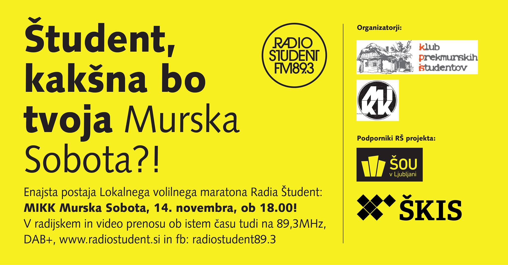 Eden od postankov Lokalnega volilnega maratona Radia Študent (LMV RŠ) bo v Murski Soboti. Dogodek soorganiziramo MIKK Murska Sobota, Klub prekmurskih študentov in Radio Študent.