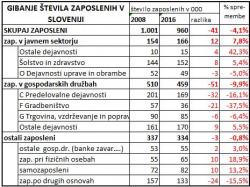V spodnji tabeli so podatki, kaj se je dogajalo z zaposlenimi zadnjih osem let, torej od leta 2008, ko je bilo število zaposlenih v Sloveniji najvišje, danes pa jih je 40 tisoč manj. V tabeli je nato ločeno prikazano gibanje zaposlenih v gospodarskih družbah (podjetjih), v javnem sektorju ter gibanje vseh ostalih zaposlenih. Kot je znano, se je število zaposlenih javnega sektorja povečalo, po podatkih Statističnega urada Slovenije za 12 tisoč. V istem obdobju so podjetja število zaposlenih znižala 50 tisoč ljudi, kar je razumljivo močan argument v prid racionalnemu delovanju gospodarstva glede na "neodzivni" javni sektor.