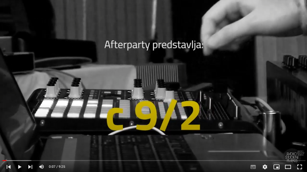 V tokratnem Afterparty-ju smo se lotili tkanju stika med človekom in okolico, med tistim kar nas grabi in tistim, kar moramo zagrabiti, uglasiti in prefiltrirano spustiti skozi čutila - da lažje slišimo in razumemo. Tako kot moramo to dopustiti tudi vsakoletnemu Treskanju, katerega letošnji predstavnik bo tudi hrupno "letalo", mlad dvojec neizrečenih imen - C9|2. ''Zvoki nekdaj stoječe hiše. Terenski posnetki. Dva PC-ja, dva modela, en internet, eno življenje. Hrup.'' S temi besedami v poetičnem poskusu glasbenika/zvočnika povzameta vsoto prijateljskega druženja, ki rezultira v hrupnih artefaktih na poti visoko viskoznega pulziranja. Vaš pulz nastavite na 89,3 MHz!!!