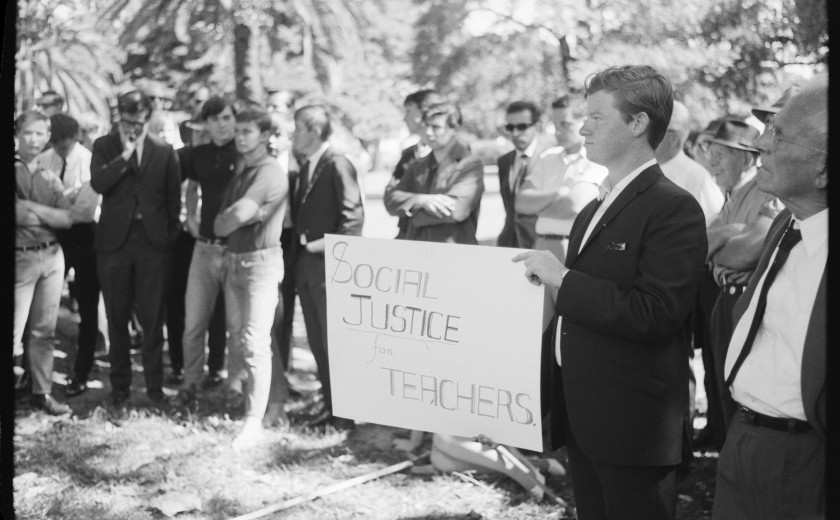 "File:Rally for wage increase, involving trainee teachers at hyde Park, Sydney, NSW 01.jpg" by The Tribune / SEARCH Foundation is licensed under CC BY 4.0