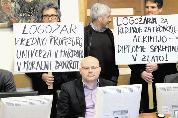 Igor Tičar se je ponovno pokazal v vsej svoji zaščitniški luči do prestopniških sodelavcev in pod preprogo pometel še eno afero. Bivši dekan mariborske Ekonomsko-poslovne fakultete, Klavdij Logožar, ki je leta 2008 za 24.000 evrov Dursu prodal diplomsko delo svoje študentke, ostaja na mestu izrednega profesorja. K temu se je namreč mariborska univerza zavezala s sodno poravnavo, ki sta jo lani sklenila rektor Igor Tičar in Logožar. Slednji je zatem tožbo zoper univerzo tudi umaknil. Seznam Logožarjevih privilegijev pa se tu ne konča. Ostal je tudi član senata univerze in predstojnik Inštituta za transport in poslovno logistiko. Če bi po kakšnem čudnem scenariju v senatu odločal zgolj Tičar, bi njegov kolega Logožar postal celo redni profesor. A zaenkrat v senatu še odločajo vsi njegovi člani in članice, ki jih v nasprotju z njihovim vodjo pamet in občutek za pravičnost in etiko še nista zapustila.