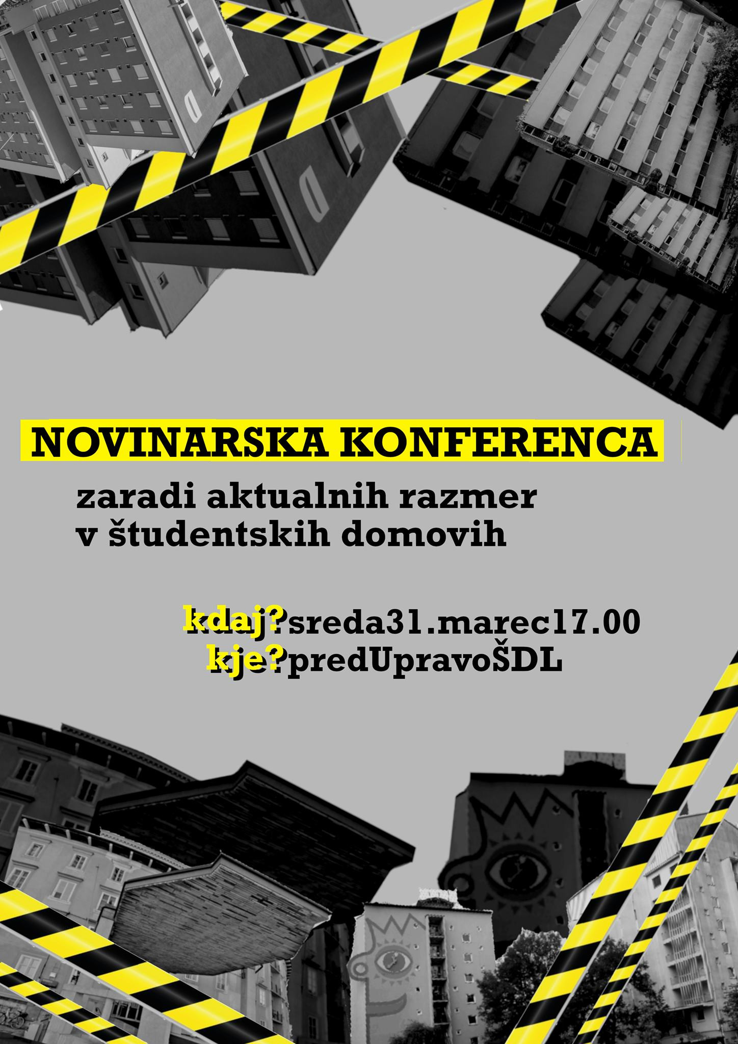 V sredo, 31. marca, se je ob 17. uri pred upravo Študentskih domov Ljubljana, v nadaljevanju ŠDL, zgodila novinarska konferenca zaradi aktualnih razmer v študentskih domovih. Zvrstilo se je 10 govorcev in govork, ki so v eni uri predstavili stanje in načrte ŠDL, svoje izkušnje bivanja v domovih ter širšo sliko stanovanjske problematike v Ljubljani. V današnji oddaji Kaj pa univerza bomo predvajali odseke nagovorov. Konferenco je začela Klara, članica študentskega sveta stanovalcev, v nadaljevanju ŠSS, ki je povzela stanje v ŠDL.