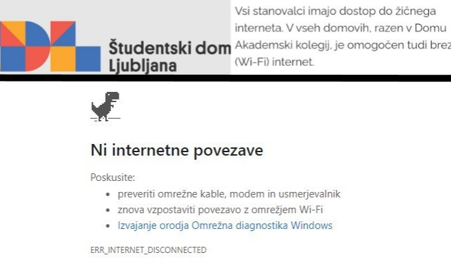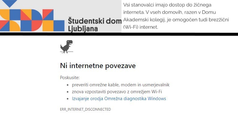O težavah z internetno povezavo v Študentskem domu Ljubljana