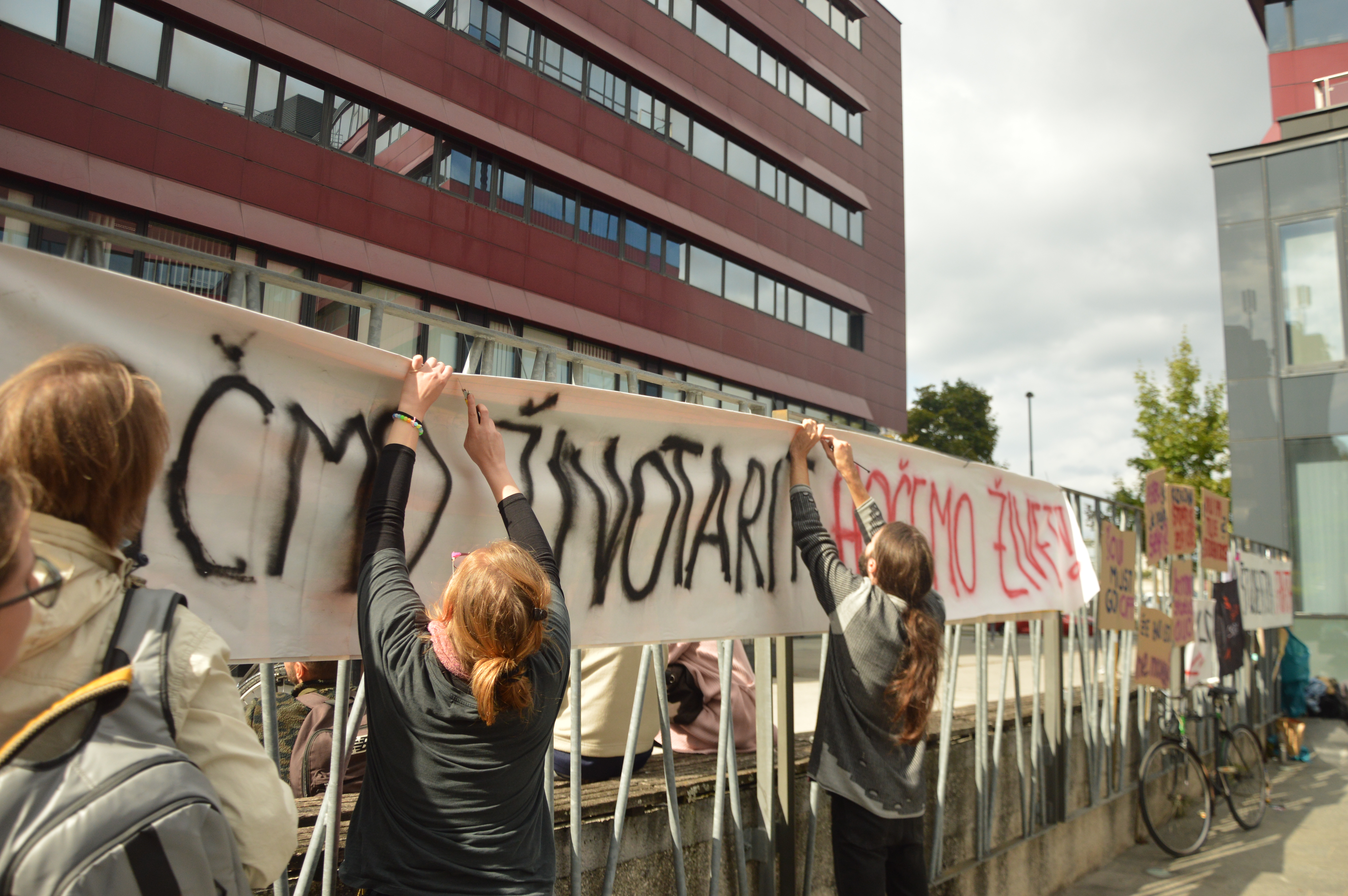 Fotografija je bila posneta v torek 21. 9. 2021, ko so v Društvu Iskra in samoorganiziranem kolektivu Študentska fronta organizirali javno študentsko skupščino o aktualni študentski problematiki. Govore so imele študentke in študenti iz vrst Zagona, Študentske fronte, Iskre, Liste demokratičnega študentstva, Iniciative za tuje študente in drugi. Kritiko delovanja vlade na področju visokega šolstva pa je podal tudi predsednik Visokošolskega sindikata Slovenije.