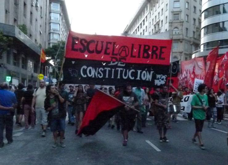 Ena od njih je tudi »Escuela Libre de Constitución«, ki v državnem financiranju vidi poskuse vplivanja na njihovo delovanje. Šola je sicer z delovanjem začela leta 2007, po tem ko se je »Libertarna federacija Argentine« odločila podpreti širšo iniciativo za osnovanje šole, ki naj bi temeljila na anarhističnih principih in idejah ter stremela k emancipaciji posameznika, razvoju kritičnega mišljenja in gradnji sveta brez izkoriščanja in neenakosti. Kjer bi učenci in učitelji sodelovali na vseh ravneh organizacije, se skupaj udeleževali protestov in drugih družbeno angažiranih dogodkov, raziskovali zgodovino delavskega in anarhističnega gibanja ter na različne načine prispevali k skupnosti, v kateri delujejo.