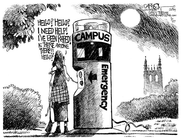 Večina posilstev se zgodi na zabavah, ko je žrtev opita in posledično slabše nadzira svoje telesne funkcije, kar na marsikateri univerzi s pridom izkoriščajo, ko želijo minimizirati pomen posilstva in upravičiti dejanje obtoženca, pri čemer se poslužujejo diskriminatornih argumentov. Vzrok za posilstvo pripisujejo izzivalnosti obleke, opitosti žrtve, sprašujejo jo, zakaj se pred napadalcem preprosto ni branila, in podobne neumnosti. Tisti redki zaposleni na univerzi, ki se odločijo stopiti žrtvi v bran, pa so nemudoma utišani.
