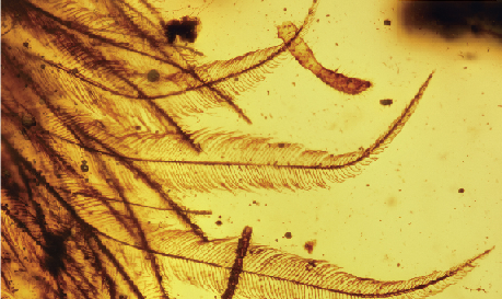 Najdba z mjanmarske tržnice je ogromno doprinesla k raziskovanju anatomije, saj je znotraj jantarja opazna tridimenzionalna oblika repa dinozavra. Obenem njegova dobro ohranjena struktura omogoča boljši vpogled v sestavo peres pri dinozavrih in tako dopolnjuje še nezaključeno zgodbo o evolucijskem razvoju peres. Peresa v jantarju nimajo izrazite osrednje osi, značilne za sodobne ptice. Imajo pa strukture, ki sestavljajo preostali del peresa. Pri sodobnih pticah na sredini peresa vidimo srednjo os, imenovano tudi rebro. Nadalje iz njega izhajajo ožja stranska rebra, iz njih pa še manjša rebrca s kaveljčki, ki jih povezujejo v ravno ploskev. Struktura najdenih peres potrjuje eno od teorij o nastanku strukture peres, kot jih poznamo danes. In sicer pravi, da so manjše strukture, podobne stranskim rebrom in rebrcem, nastale pred oblikovanjem osrednje osi.
