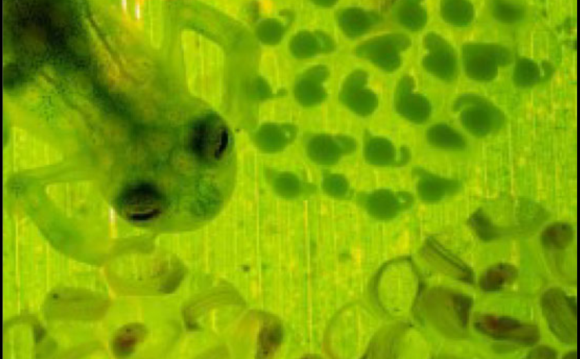 Tokrat se v znanstvenih novicah selimo v deževne gozdove Srednje in Južne Amerike, kjer biva 160 vrst tako imenovanih steklenih žab. Kot za večino drugih žab je tudi za to družino značilna zunanja oploditev. Žabec med parjenjem s samico v okolico odloži spermo, samica pa odloži jajčeca. Ker gre za način zunanje oploditve, se del sperme izgubi še pred oploditvijo, prav tako pa lahko v bližino jajčec svoje spermije izloči drug samec. Kako torej samci različnih vrst steklenih žab povečajo možnost uspešne oploditve?