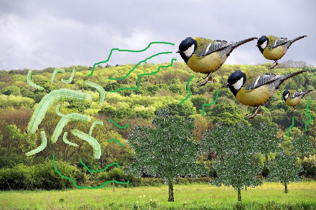 Gnezditvena fenologija sinic, torej čas, ko imajo mladiče, je odvisna predvsem od zaloge hrane, ki jo imajo. V raziskovalni skupini so tako preučevali prehransko verigo, v katero so bile vključene sinice, ki so prehransko odvisne od gosenic nočnega metulja, imenovanega mali zimski pedic. Te gosenice se hranijo z mladimi listi hrastov, posledično pa na hrastovih drevesih pogosto gnezdijo tudi velike sinice.