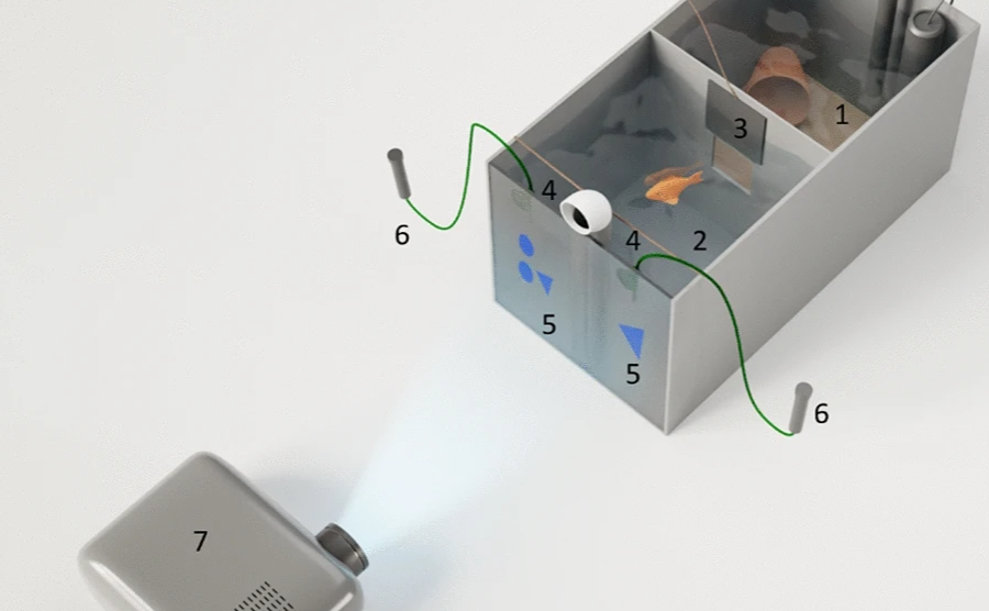 Za omenjeni poskus je raziskovalna skupina naključno izbrala osem ostrižnikarjev in osem morskih bičev, ki so jih testirali individualno. V prvem koraku je bilo treba žival sploh naučiti računanja. Ribi so najprej pokazali določeno število likov izbrane barve. Če so bili liki obarvani modro, je to pomenilo »dodaj eno«, če pa so bili obarvani rumeno, je to pomenilo »odštej eno«. Ko so jim prikazali prvotno sliko, na primer štiri rumene kvadrate, so jo odstranili. Nato so živali prikazali dve novi sliki – eno s petimi in eno s tremi kvadratki. Če so priplavale do pravilne slike, torej do treh rumenih kvadratov, so jih nagradili s hrano. Če pa so priplavale do napačnega odgovora, hrane niso dobile. Sčasoma so se naučile povezovati modro barvo s povečanjem za eno v količini, prikazani na začetku, in rumeno številko z zmanjšanjem.