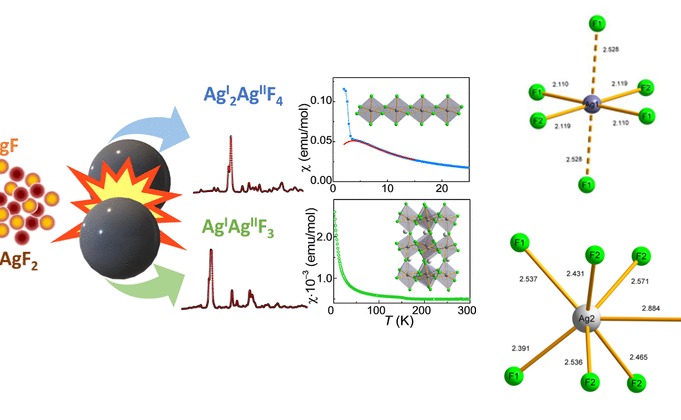 Vir: Belak Vivod, M., Jagličić, Z., King, G., Hansen, T. C., Lozinšek, M., & Dragomir, M. (2024). Mechanochemical Synthesis and Magnetic Properties of the Mixed-Valent Binary Silver(I,II) Fluorides, AgI2AgIIF4 and AgIAgIIF3. Journal of the American Chemical Society.https://doi.org/10.1021/jacs.4c11772